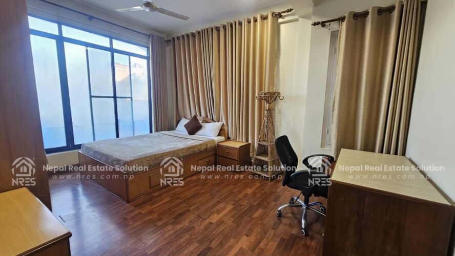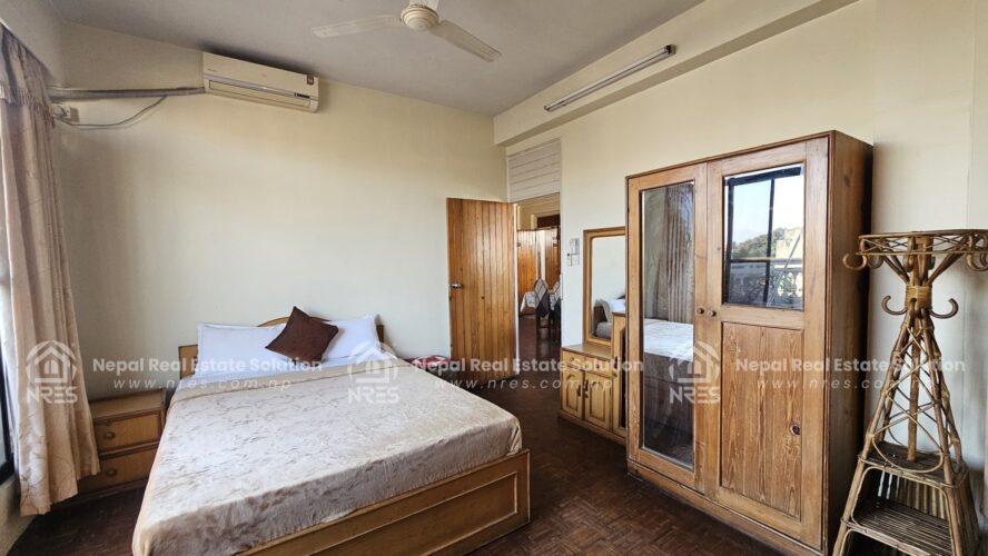 The apartment for rent in Lalitpur. This fully furnished apartment spans 1,660 sq. ft. and is priced at NPR 1.40 lakh per aana. It features two spacious bedrooms, a comfortable living room, one well-appointed bathroom, and a functional kitchen. The apartment also boasts an amazing balcony view, offering a perfect blend of comfort, space, and scenic living.