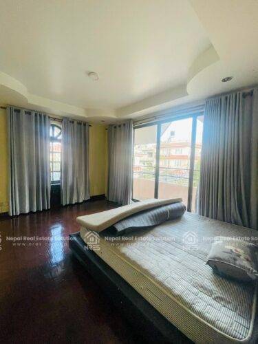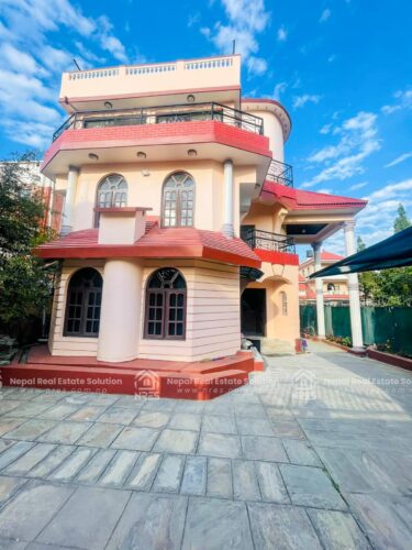 The house for rent is located in Bhaisepati, Lalitpur. This house has a land area of 12 aana with south-east facing and it features 4 bedrooms, 4 bathrooms (2 attached), 2 kitchen/dining, 2 living rooms, a store, a pooja room, and a guard house. This house has facilities such as an electricity & telephone connection, internet & cable TV, water supply, 20 ft road access on two sides, parking space for 3 cars and 30 bikes, peaceful surroundings and many more. So don’t miss this opportunity to own and reside in this beautiful house for rent.