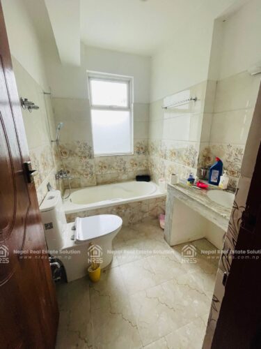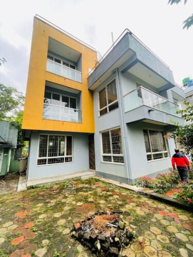 The house for rent in Lalitpur.It covers the area of 9 Aana with the rent price of 1 lakh 10 thousand per month. It consists of 6 bedrooms, 5 bathroom, 3 living room, 1 kitchen and also includes the parking space for 4 cars. It is north facing with 14 feet of road access.