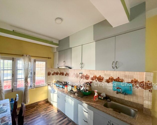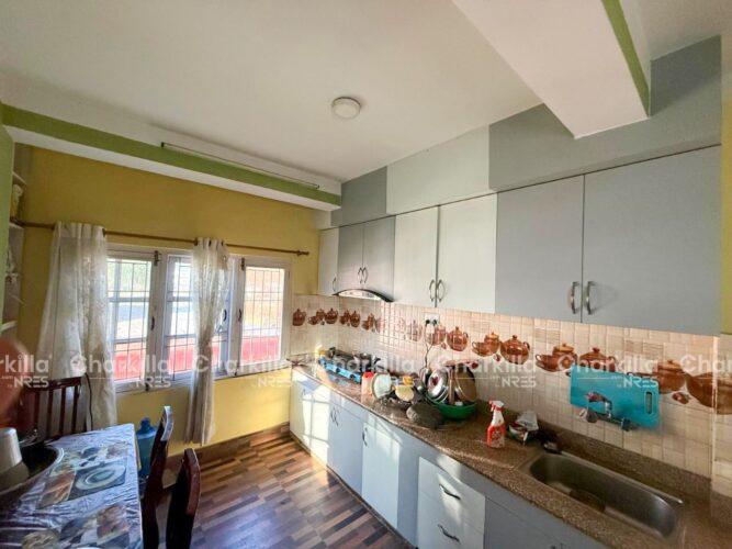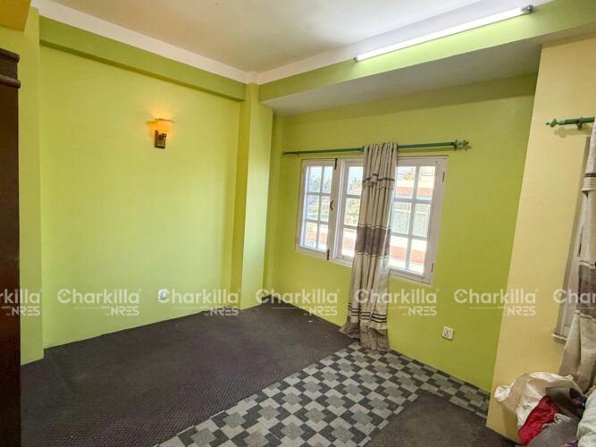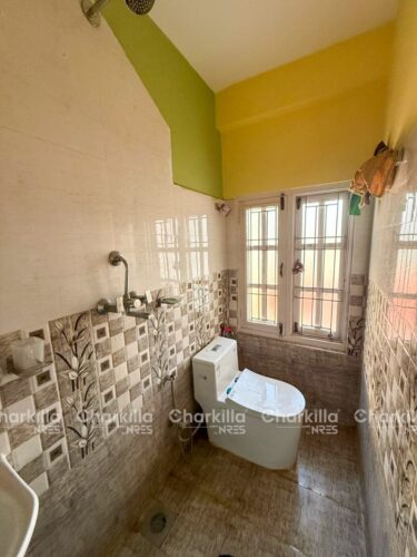 The house for sale in Lalitpur. It covers the area of 3 aana 2 paisa 1 daam with the price of 2.25 crores. It consists of 6 bedroom, 4 bathroom(1 attached), 2 kitchen, 2 living room, 1 poojaroom. The house is south east facing and has the road access of 20 feet. It has the parking space for 1 car and few bikes.