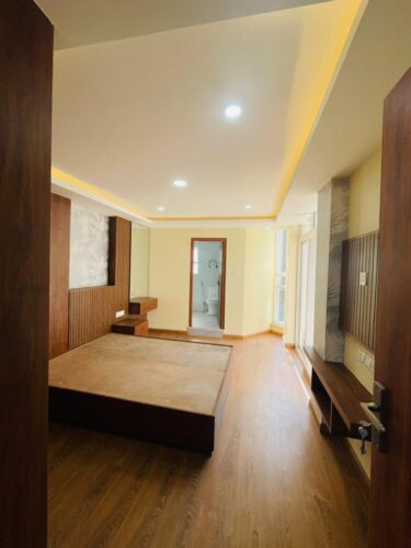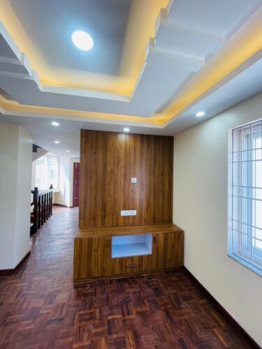 The house for sale is located in Manjushree Tole, Bhaisepati. This house has total 5 aana land area and is south facing. The house features 4 bedrooms, 5 bathrooms (4 attached), 1 kitchen, 1 living room, and a pooja room. This houses has all the basic facilities such as electricity, water supply, internet connection, cable connection, access of 16 feet pitched road, parking space for 2 cars and few numbers of bikes, peaceful environment, and many more. This house is perfect for those looking for a new modern family house to live in with their family so, don’t miss out your chance to own and resides in this beautiful house for sale.