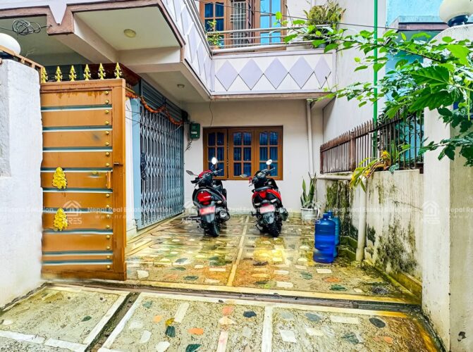 The house for sale ni Jorpati. It covers the area of 3 Aana and the price is 1.99 crores in total. It consists of 6 bedroom, 3 bathroom, 2 kitchen, 2 living room, 1 pooja room and also includes 1 car and bike parking space.