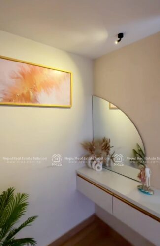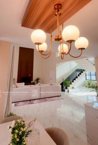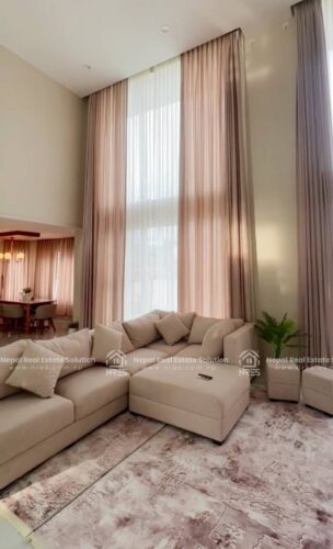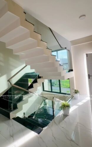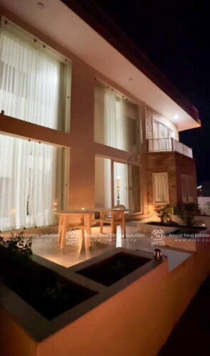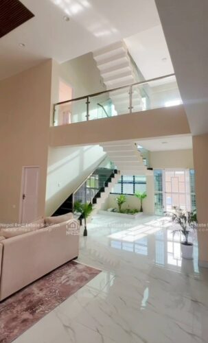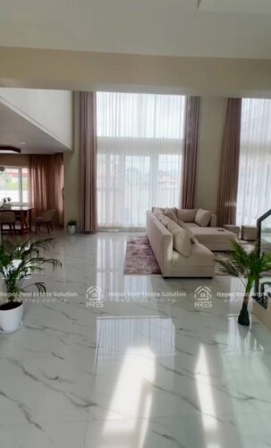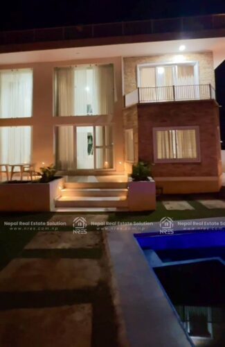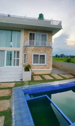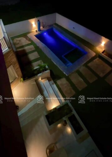 This beautiful Luxury Bungalow house for sale at Rithepani, Pokhara. The house has got huge land area of 11 Aana 3 paisa 2 daam having 4 bedrooms (1 Guest Room), 5 bathrooms (4 attached), 1 kitchens + store and 1 grand living room (divided into formal and informal sitting areas). The exterior of this property is a lot to talk about. It features 1 beautiful outdoor Temple area, (20×10) size swimming pool with a shower room, a massive car parking space where you can adjust up to 3 Cars and number of two wheelers as well. It has got very step up kind of gardening concept which sort of blends in with the exterior very well giving the house Castle kind of look to the house giving a fairytale kind of vibes. The house has got facilities such as electricity, 24\7 water supply, cable connection, internet connction, telephone and very peaceful neigh borhood. Its a heighted property having the access of 20 feet of road Access. which offers you vintage yet very classy and sophisticated interiors. this other wise you can simply use it for residential purpose. It will offer you Luxury both ways. It can be made available for you in all three conditions: Fully furnished. So, hurry up and grab this wonderful opportunity to own this beautiful property.