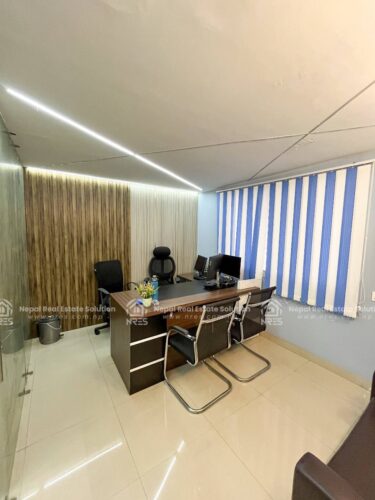 This office setup for sale is in Gwarko, Lalitpur. This space has a total of 800 sq. ft. This space has all the basic facilities such as electricity, water supply, internet connection, cable connection, access to a 20 ft. pitch road, and many more. This space will be provided fully furnished with tables, attached furniture, AC, CCTV camera ,partition, inverter, etc…. This space is perfect for those looking for fully furnished space in a prime location for office and business so, don’t miss out on your chance to own, establish and run your business/office in this beautiful office setup for sale.